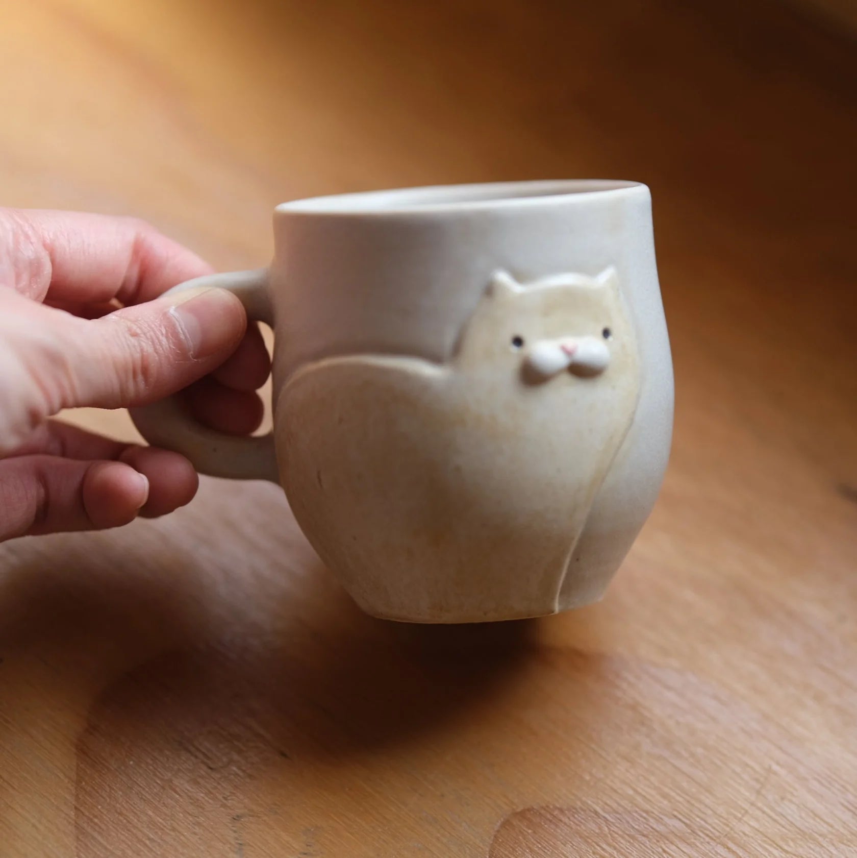 手作陶瓷猫杯-米色